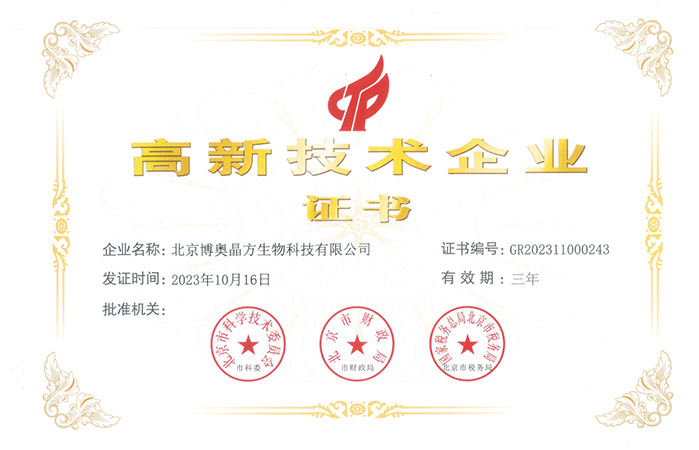博奧晶方榮獲由科技部、財(cái)政部、國家稅務(wù)總局三大部委共同認(rèn)定的“國家高新技術(shù)企業(yè)”稱號(hào)