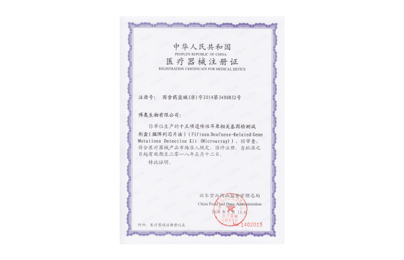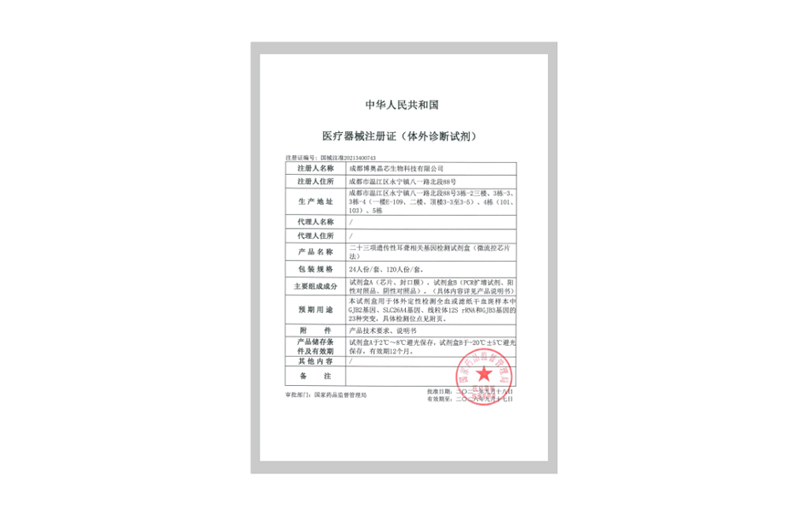 二十三項(xiàng)遺傳性耳聾相關(guān)基因檢測試劑盒(微流控芯片法)獲國家醫(yī)療器械注冊證