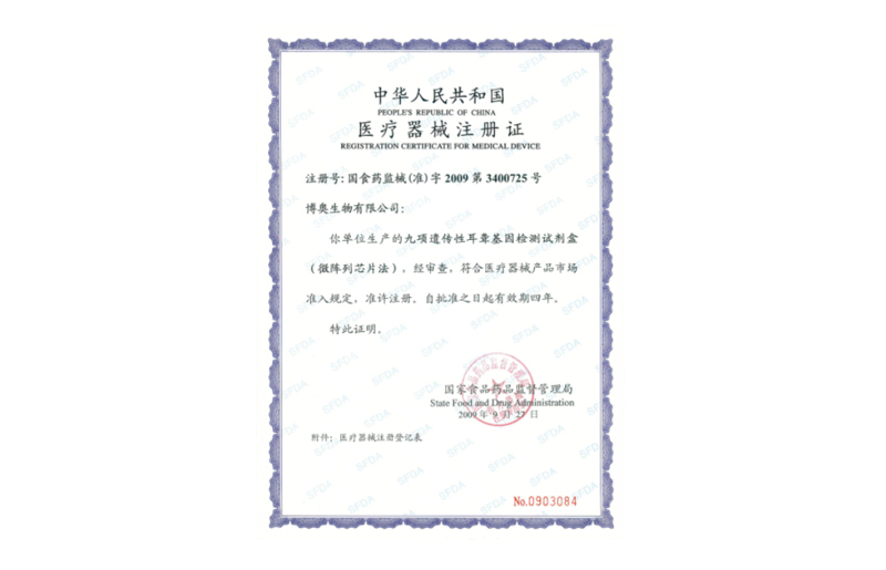 博奧生物全自動(dòng)生化分析儀和糖脂三項(xiàng)檢測試劑盒雙雙獲得國家醫(yī)療器械注冊證