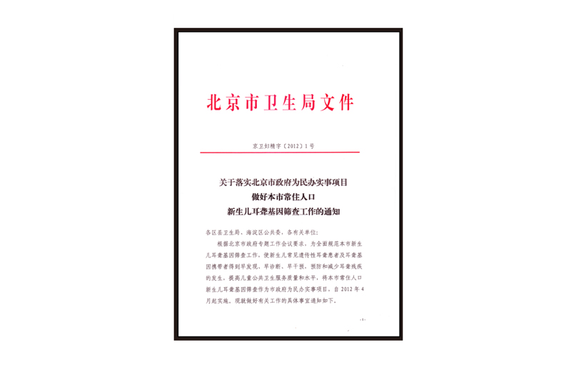 新生兒耳聾基因篩查項(xiàng)目納入2012年北京市為民辦實(shí)事工程