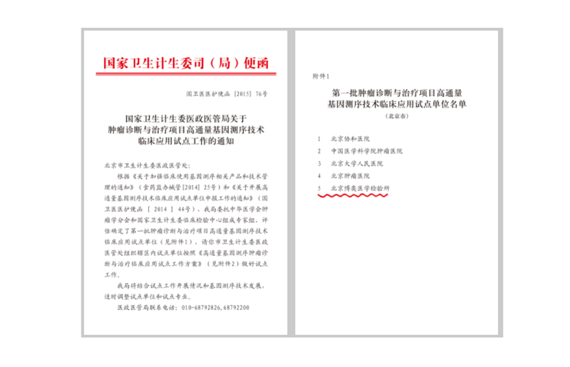 國家衛(wèi)生計(jì)生委批準(zhǔn)博奧檢驗(yàn)成為第一批腫瘤診斷與治療項(xiàng)目高通量基因檢測技術(shù)臨床試點(diǎn)單位