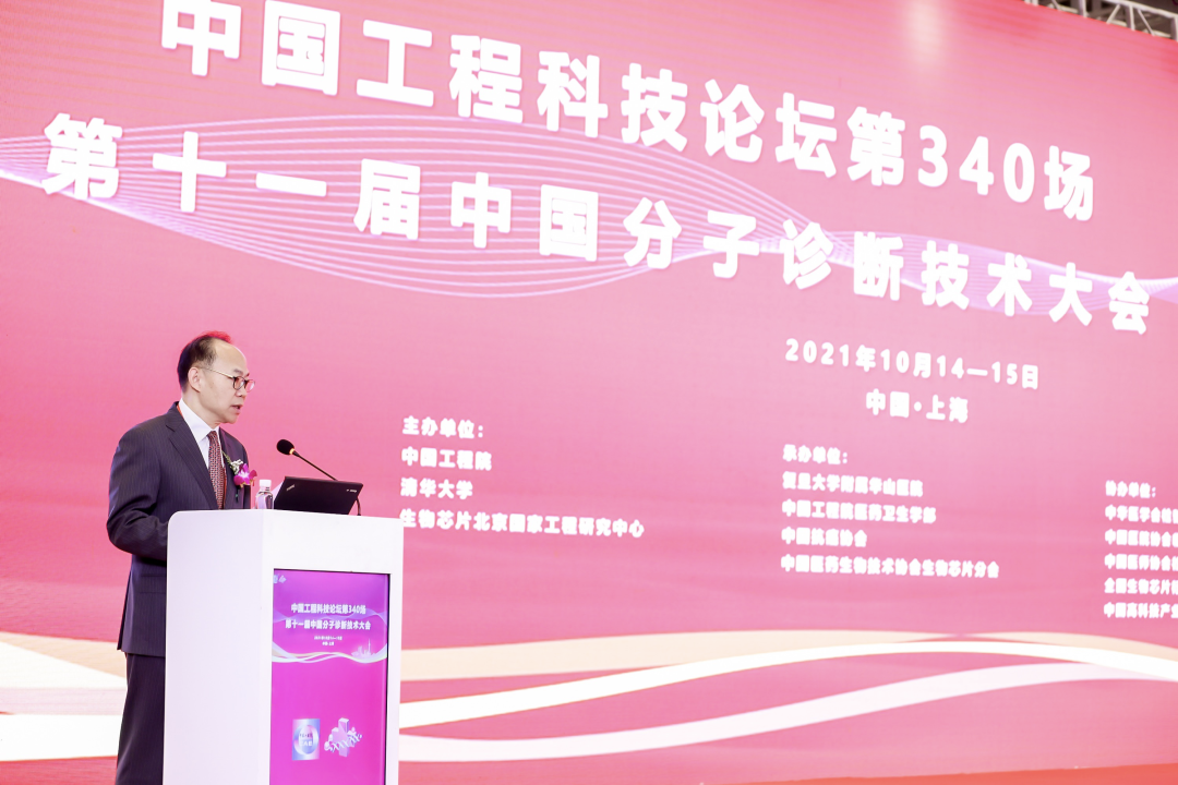2021年10月14日,“中國工程科技論壇第340場第十一屆中國分子診斷技術大會”在上海市盛大開幕。會議由中國工程院、清華大學、生物芯片北京國家工程研究中心主辦,復旦大學附屬華山醫(yī)院、中國工程院醫(yī)藥衛(wèi)生學部、中國抗癌協(xié)會、中國醫(yī)藥生物技術協(xié)會生物芯片分會承辦,中華醫(yī)學會檢驗醫(yī)學分會、中國醫(yī)師協(xié)會檢驗醫(yī)師分會、中國醫(yī)院協(xié)會臨床檢驗管理專業(yè)委員會、全國生物芯片標準化技術委員會、中國高科技產(chǎn)業(yè)化研究會協(xié)辦。