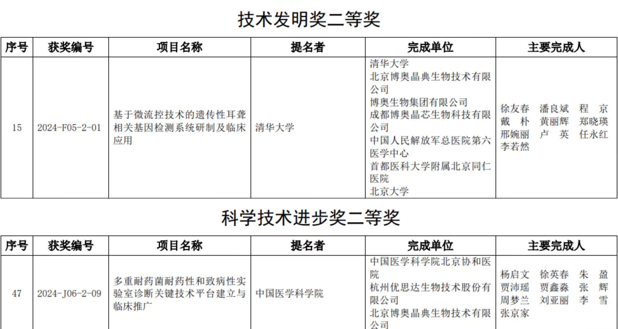憑借一直以來構建的“基礎研究+技術攻關+成果轉化”完整創(chuàng)新鏈條驅動下的硬核創(chuàng)新實力,博奧在評選中脫穎而出,《基于微流控技術的遺傳性耳聾相關基因檢測系統(tǒng)研制及臨床應用》榮獲技術發(fā)明獎二等獎、《多重耐藥菌耐藥性和致病性實驗室診斷關鍵技術平臺建立與臨床推廣》榮獲科學技術進步獎二等獎。