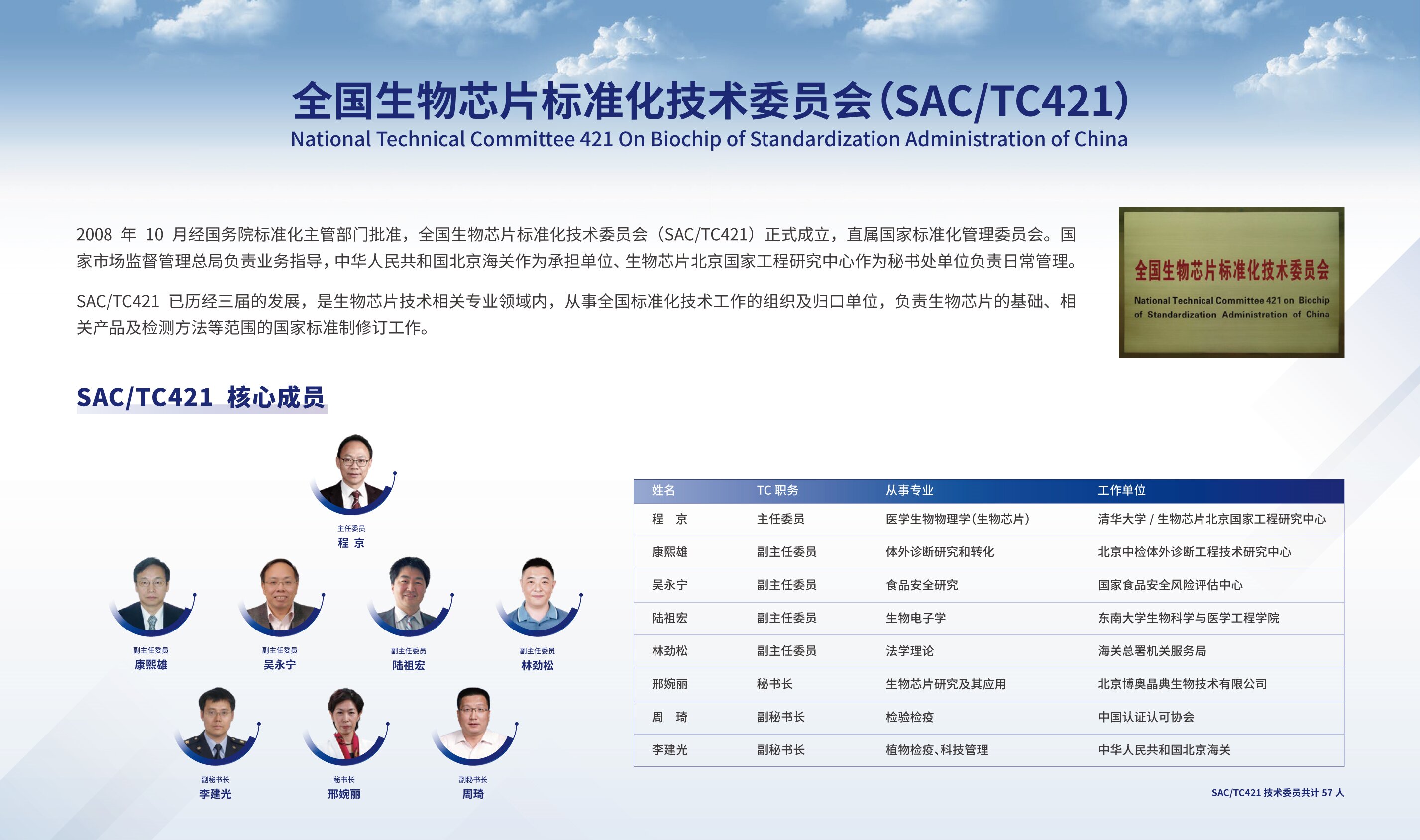 全國生物芯片標(biāo)準(zhǔn)化技術(shù)委員會(huì)(TC421)經(jīng)國務(wù)院標(biāo)準(zhǔn)化主管部門批準(zhǔn)設(shè)立。博奧生物作為TC421的主任委員和秘書處承擔(dān)單位,全面負(fù)責(zé)生物芯片的基礎(chǔ)、相關(guān)產(chǎn)品及檢測(cè)方法等范圍的國家標(biāo)準(zhǔn)制修訂工作。