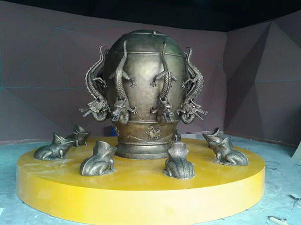 地動(dòng)儀是漢代科學(xué)家張衡所創(chuàng)。以前復(fù)原的地動(dòng)儀靠中間的“都柱”受到震動(dòng)后傾倒,觸發(fā)龍嘴里的機(jī)關(guān),讓銅球掉下來(lái)。要實(shí)現(xiàn)這個(gè)功能,“都柱”必須又細(xì)又長(zhǎng),正常狀態(tài)下還得在不借助外力的情況下保持豎立不倒。實(shí)際上這一點(diǎn)是很難實(shí)現(xiàn)的。因此,現(xiàn)公司將以機(jī)械結(jié)構(gòu)配電機(jī)的方式讓游客們通過(guò)親身體驗(yàn)?zāi)M地動(dòng)儀的功能和作用,同樣也受到的廣大同行業(yè)的一致好評(píng)。