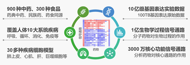 歷經8年的實驗平臺優(yōu)化和數據積累,目前建立了大規(guī)模的中藥分子功能數據庫,包括1200種中藥和食品對人體細胞的10億級真實基因表達數據和3000多萬條核心功能信號通路數據。