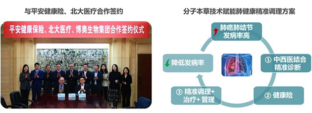 本項合作將分子本草技術(shù)賦能肺健康精準(zhǔn)調(diào)理方案,通過中西醫(yī)結(jié)合精準(zhǔn)診療的模式,早期對肺部健康精準(zhǔn)診斷、精準(zhǔn)調(diào)理+治療+管理,并與健康保險打通,從而實現(xiàn)肺健康精準(zhǔn)診療險一體化。未來將會?針對更多疾病病種,開展基于分子本草技術(shù)的中西醫(yī)結(jié)合個性化精準(zhǔn)診療,為中醫(yī)藥高質(zhì)量融入共建“一帶一路”持續(xù)發(fā)力,加速推動中醫(yī)藥國際化。